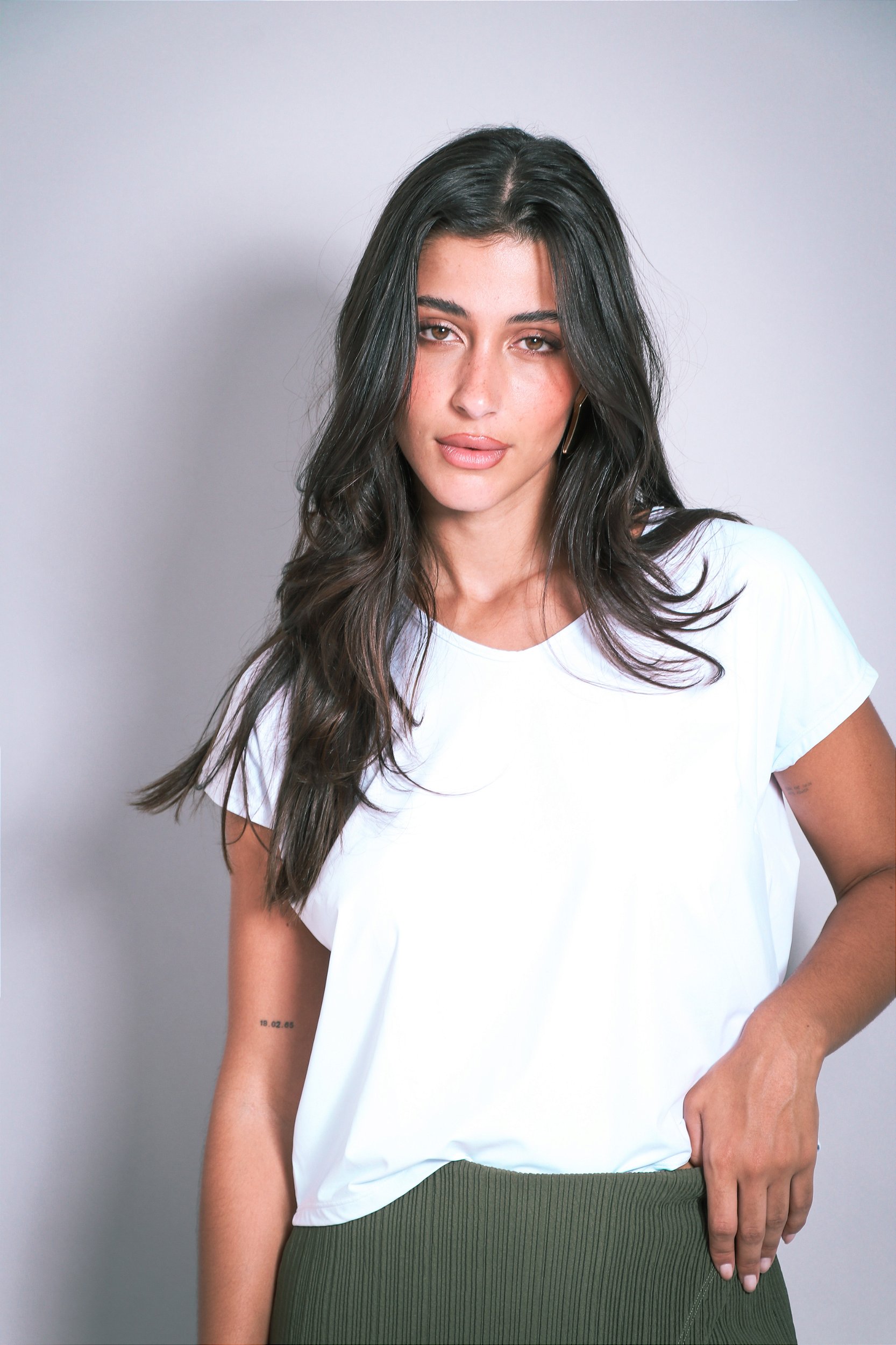 A Poliamida é reconhecida pela leveza e respirabilidade, tornando a peça ideal para os dias quentes, enquanto o Elastano adiciona flexibilidade e garante um caimento perfeito. Com um design básico e versátil, essa blusa é indispensável para compor looks que vão do casual ao mais sofisticado, sempre com muita praticidade e elegância.