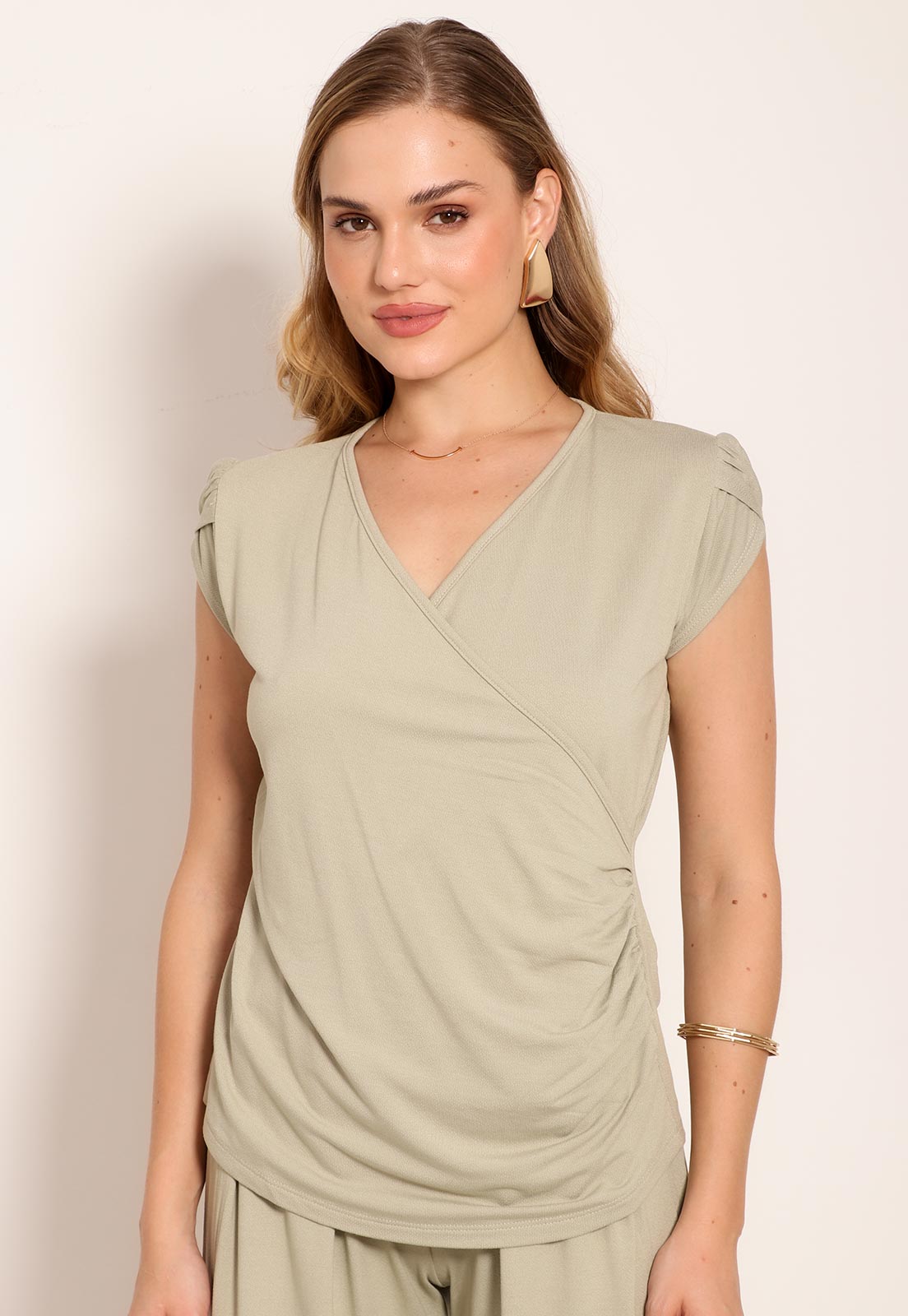 A blusa feminina transpasse é a escolha ideal para quem busca elegância e sofisticação com um toque casual. Com um design que realça a silhueta, ela apresenta um fechamento cruzado que se ajusta perfeitamente ao corpo, proporcionando um efeito visual elegante.