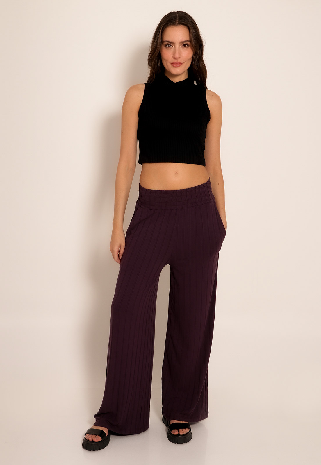A modelagem pantalona, com pernas amplas e cintura alta, proporciona um ajuste confortável e elegante, perfeito para criar looks que vão do casual ao mais arrumado. A cintura com cós ajustável ou elástico garante praticidade e um ajuste personalizado, enquanto as listras texturizadas adicionam um toque de estilo e movimento à peça, conferindo um visual único e cheio de personalidade.