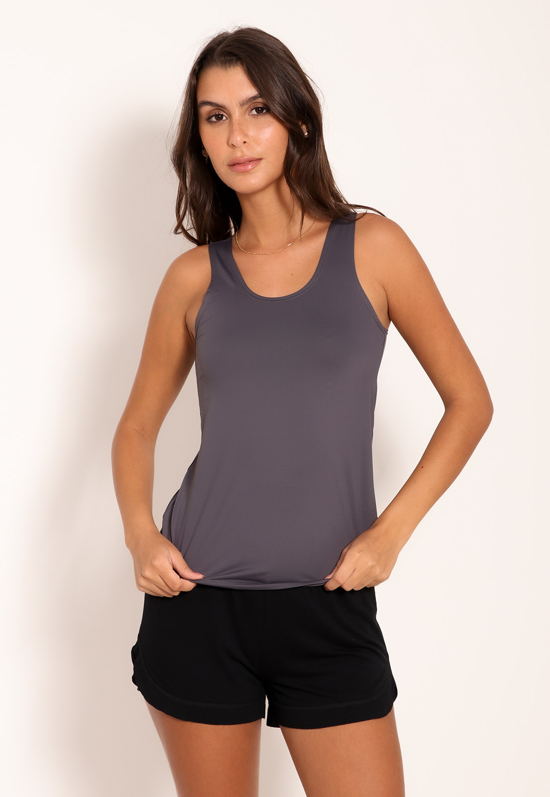 O tecido de Poliamida é conhecido por sua leveza, frescor e alta capacidade de absorção, enquanto o Elastano adiciona flexibilidade, garantindo liberdade de movimento e um caimento impecável. Com um design básico e versátil, a regata é perfeita para diversas ocasiões, combinando com diferentes estilos e proporcionando bem-estar o dia todo.
