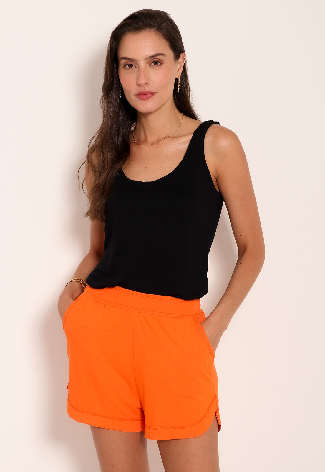 Com um design simples e atemporal, esse shorts pode ser facilmente combinado com camisetas, blusas ou croppeds, permitindo diversas opções de looks casuais. A cintura elástica oferece um ajuste confortável, enquanto os bolsos laterais acrescentam praticidade ao visual.
